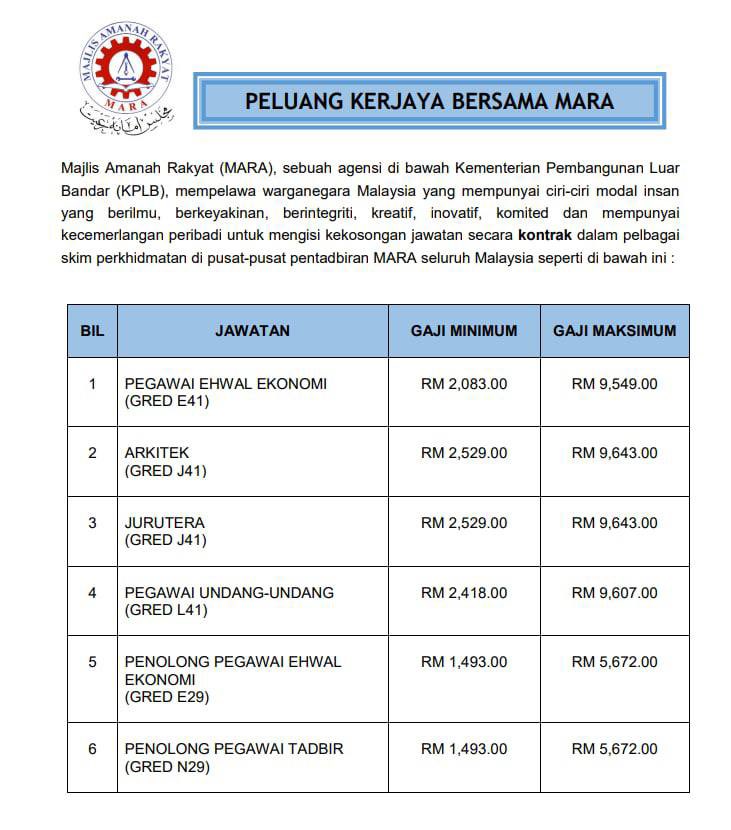 Iklan Kekosongan Jawatan Mara Pelbagai Skim Jobcari Com Jawatan Kosong Terkini